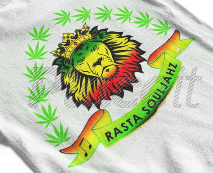 Rasta Souljahz rasta design in a plain white great for when your ready to express yourself. Herbs is the healing of our nation.